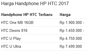 Merupakan salah satu Smartphone pabrikan Taiwan. Tidak kalah dengan produk HP lainnya, HTC juga memiliki beberapa keunggulan seperti spesifikasi yang cukup bagus digunakan oleh masyarakat umum, serta dibarengi dengan harga yang masih bisa dijangkau kalangan ekonomi menengah kebawah, sehingga tidak sedikit masyarakat kita yang menggunakan produk ini.