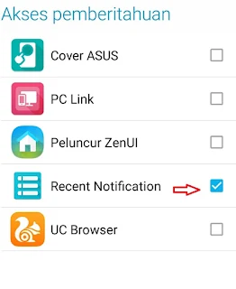 2. Kasi centeng atau berikan izin pada Recent Notification agar aplikasi ini dapat memerika semua pemberitahuan di Smartphone anda