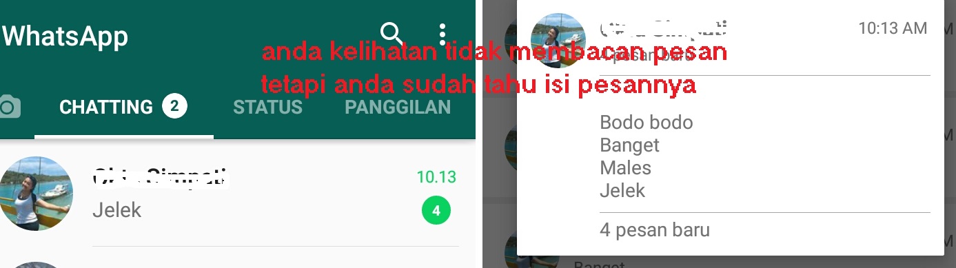 Jadi bagi anda yang posisinya sebagai pengirim pesan pastinya sangat senang dengan adanya fitur ini karena pesan yang anda salah kirim bisa dihapus kembali sebelum dibaca penerima. Nah bagaimana jika posisi anda sebagai penerima pesan? jadi penasaran bukan? kita bakalan berfikir "apaan sih pesan yang sudah dihapus itu, jadi penasaran sama isinya ".
