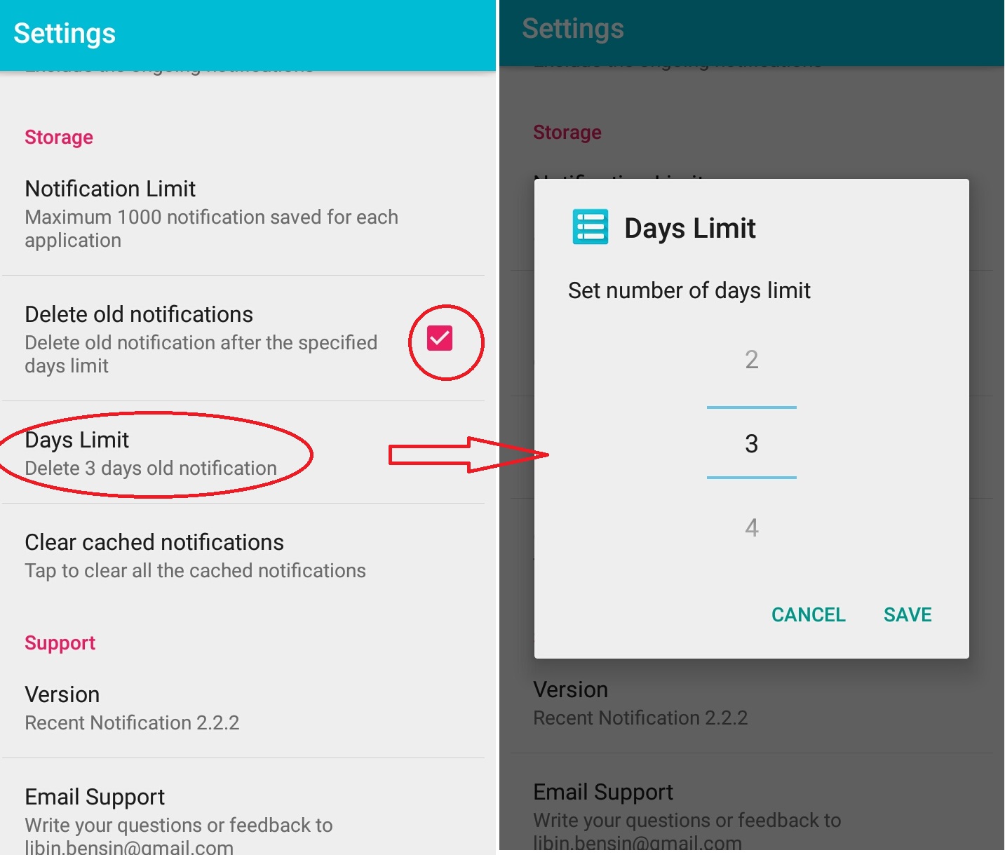 Day limit adalah batas hari notifikasi, baik itu dari Whatsapp ataupun aplikasi lainnya yang tersimpan di Recent Notifikasi