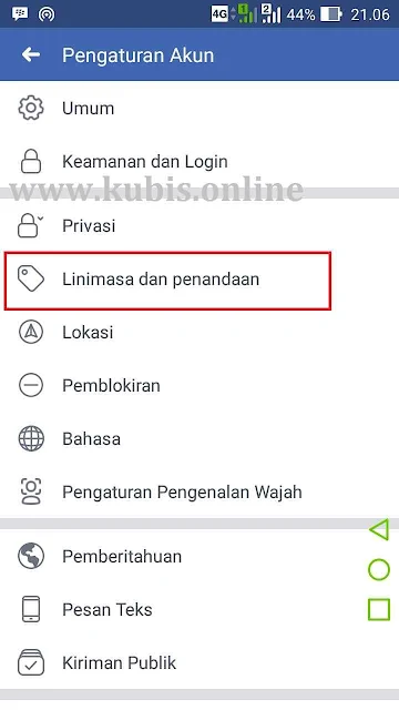 4. Selanjutnya akan ada deretan menu, silahkan anda pilih >> Linimasa dan penandaan