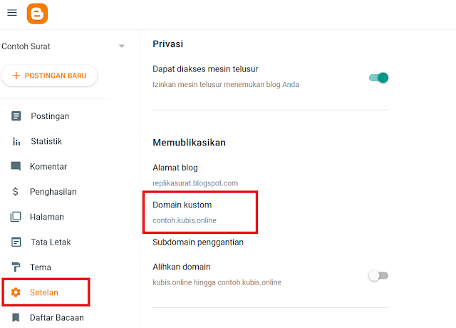 Secara umum apabila kita membuat sebuah website dengan platform Blogger maka akan muncul alamat url yaitu namadomainanda.blogspot.com. Untuk mempercantik dan mempermudah mengingat nama domain tersebut maka diperlukan Domain khusus yang nantinya bisa anda gunakan untuk Costum Domain di website anda.