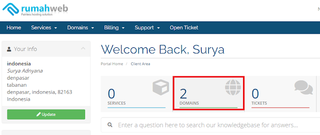 1. Pertama yang pasti anda sudah memiliki akun di Rumah Web dan sudah berlangganan Domain