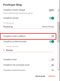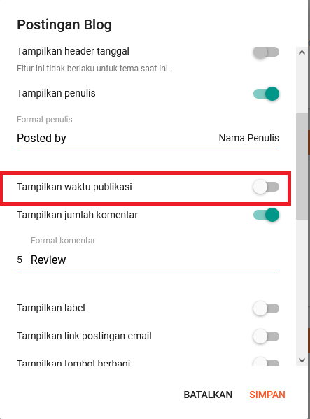 4. Pada bagian Tampilkan waktu publikasi silahkan anda nonaktifkan